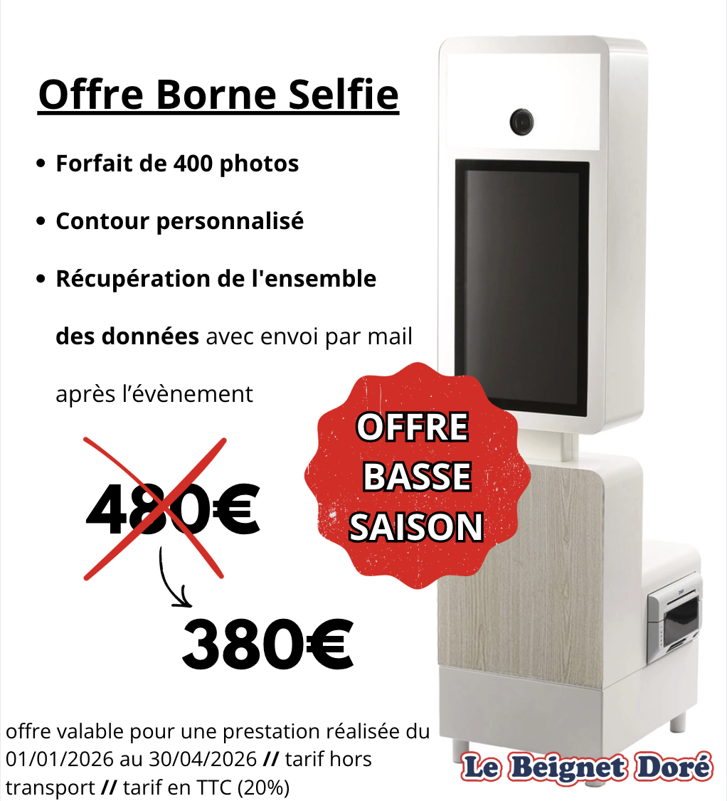 Le Beignet Doré accueille une toute nouvelle borne selfie ! Conçue pour répondre à toutes les envies, elle propose deux modes d’utilisation : en position assise ou debout. Des nouveaux contours sont également disponibles.